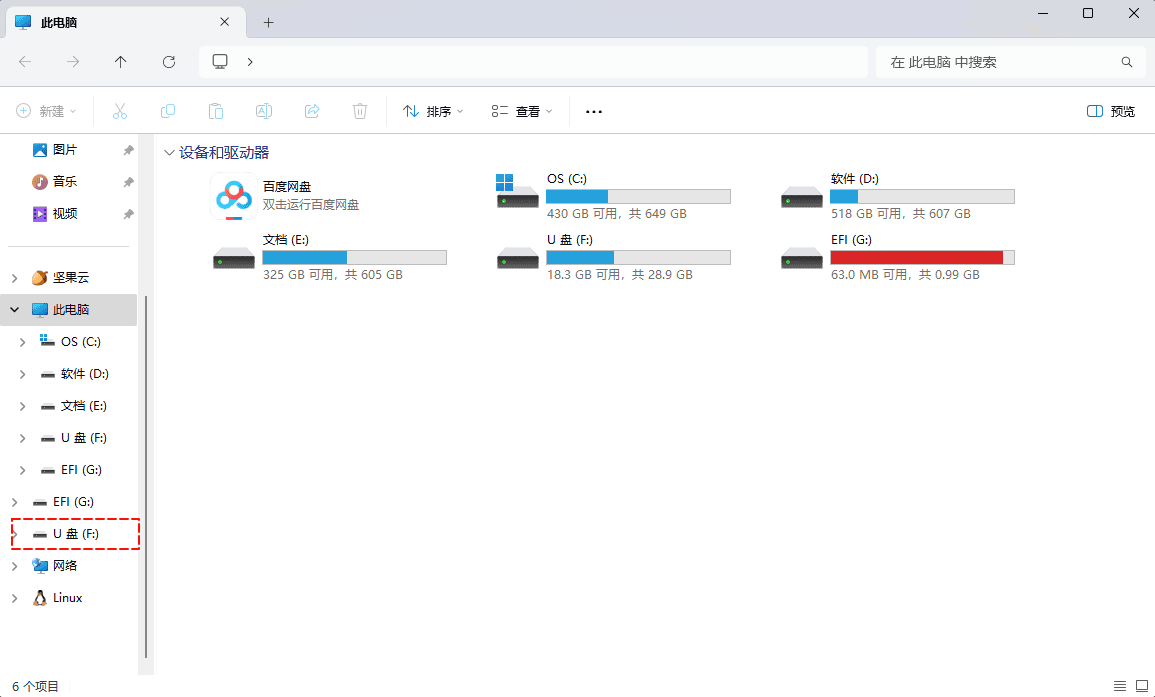 如未拔出 U 盘进行 Windows 安装则会影响盘符顺序!