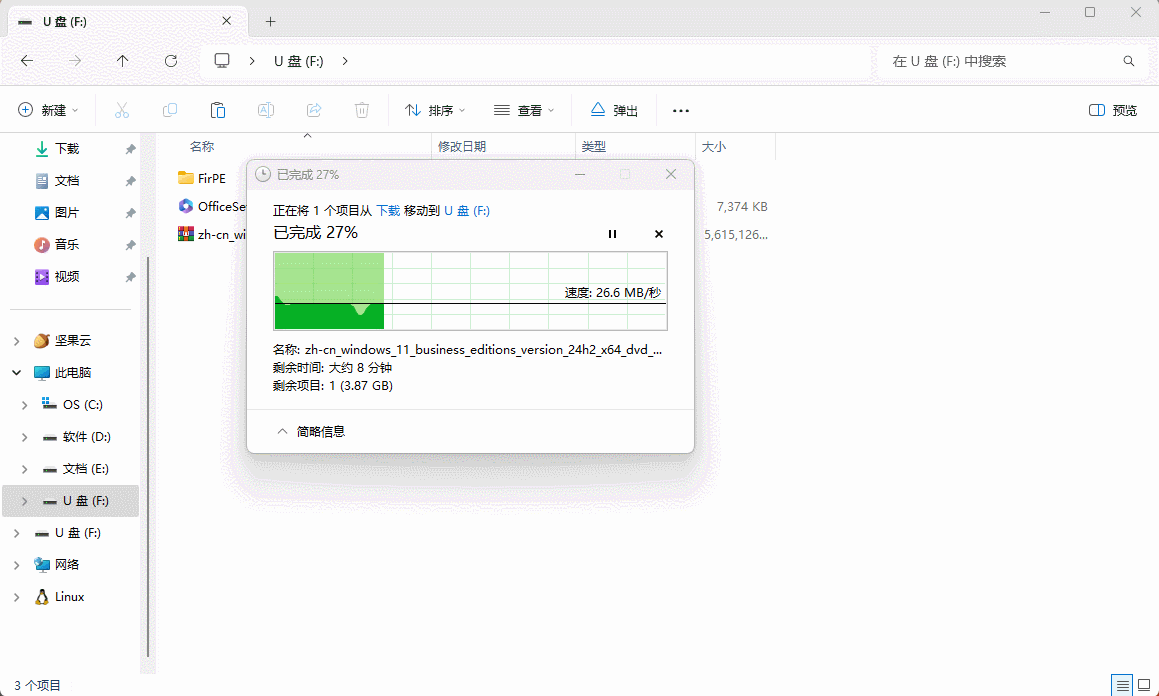 将下载的 Windows 镜像以及 Office 安装包复制到 U 盘中: