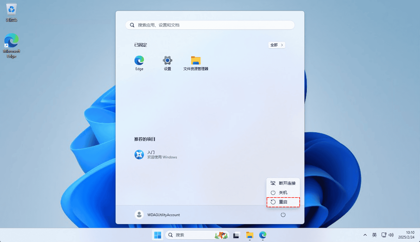 - 在 WinPE 中选择重启系统,拔出 U 盘,进入 Windows 安装过程