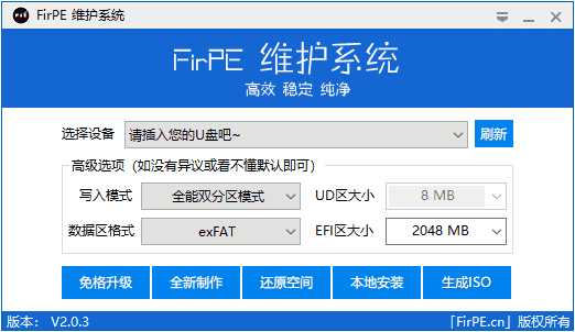 - 打开上面下载的 FirPE 程序,点击「全新制作」按钮制作启动盘: